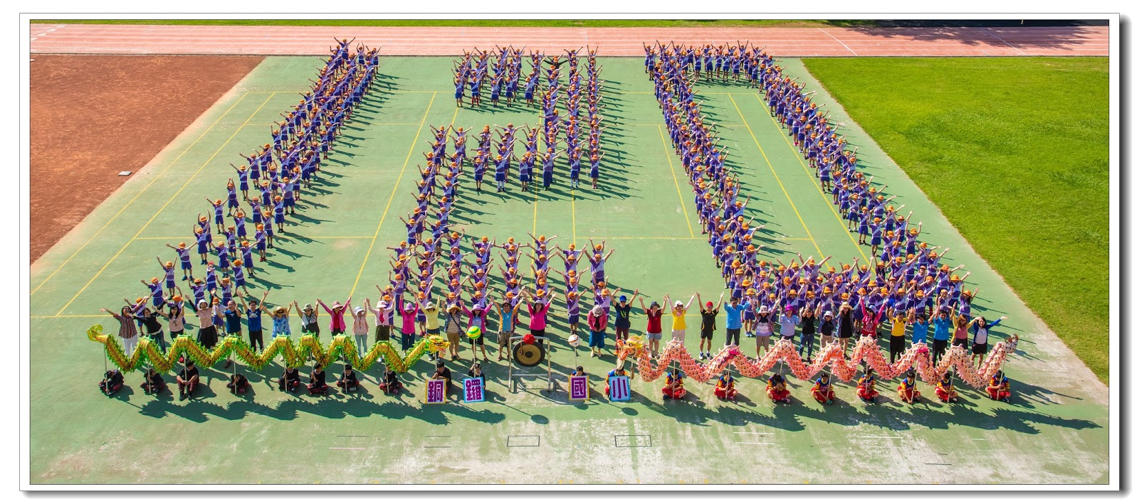 全校在謝校長與YMCA青影社社長林宗弘經數月研究與精心安排下,2018年5月18日於操場動上,動員全校師生,排成120字型隊伍,深具意義,至為壯觀。